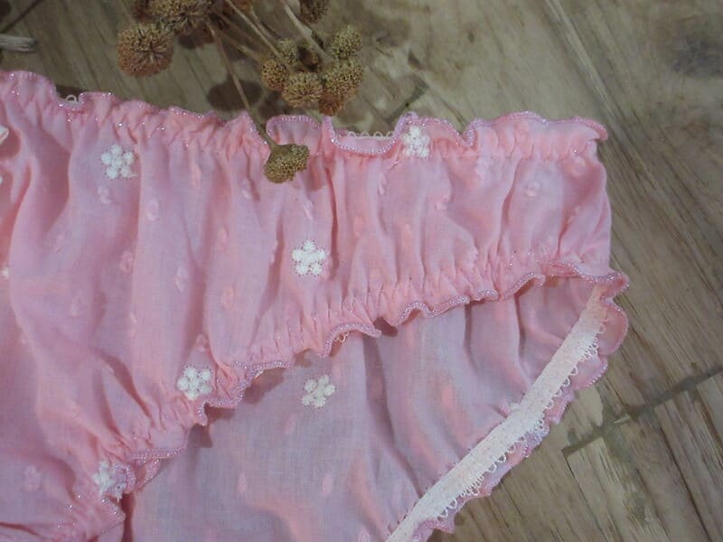 « Succombez au charme rétro du bloomer INDIAN SONG. Confectionné à la main dans un voile de coton rose poudré avec de délicates broderies fleurs de crème, il offre un confort absolu du 36 au 52. Une pièce artisanale, douce et poétique, idéale pour vos moments de détente ou vos nuits d’été. »