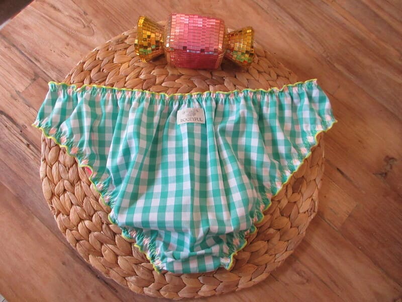 L’expérience Bootyful : Chaque culotte est délicatement glissée dans un pochon en coton réutilisable. Non seulement cela protège votre lingerie, mais cela offre aussi une touche bohème dès l’ouverture de votre colis.