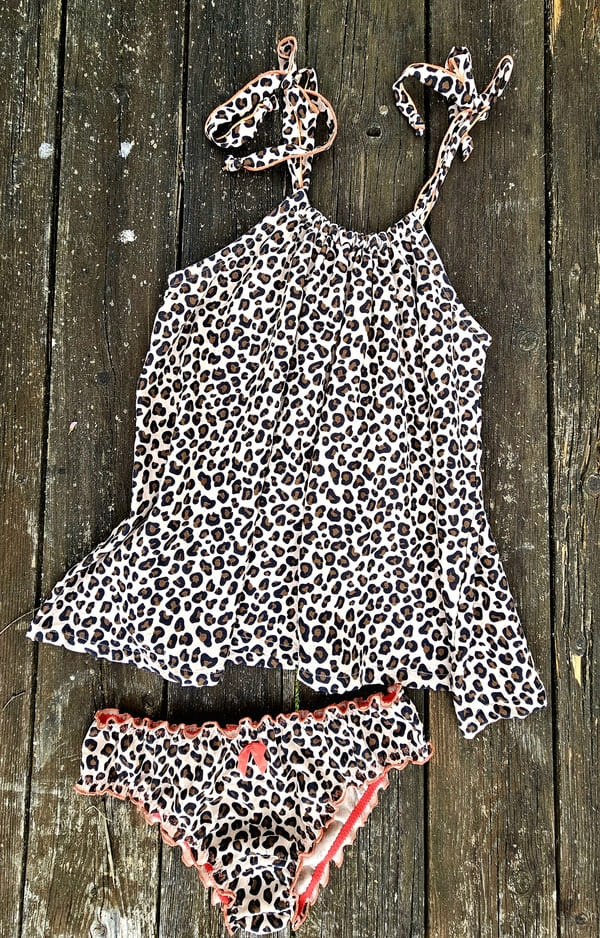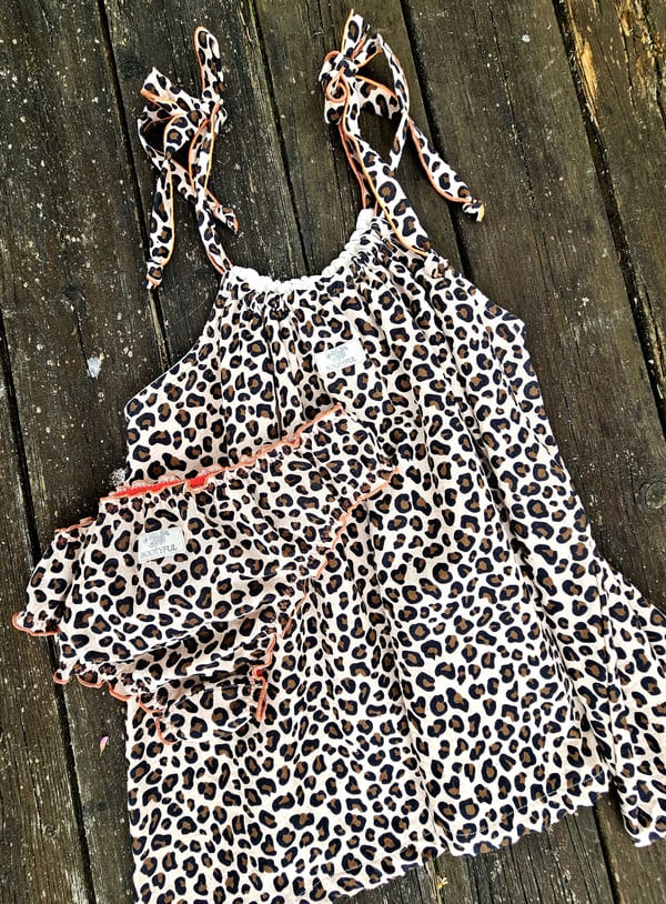 Ensemble lingerie SEVILLE en double gaze de coton léopard.
